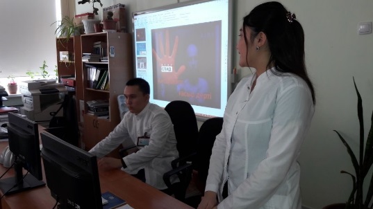 Студенты-волонтеры III- курса специальности «Лечебное дело» Алихан Олжабаев и Рысқаным Аскарова по принципу «Равный равному» для студентов I- курса провели беседу на тему «ВИЧ/СПИД –болезнь века».