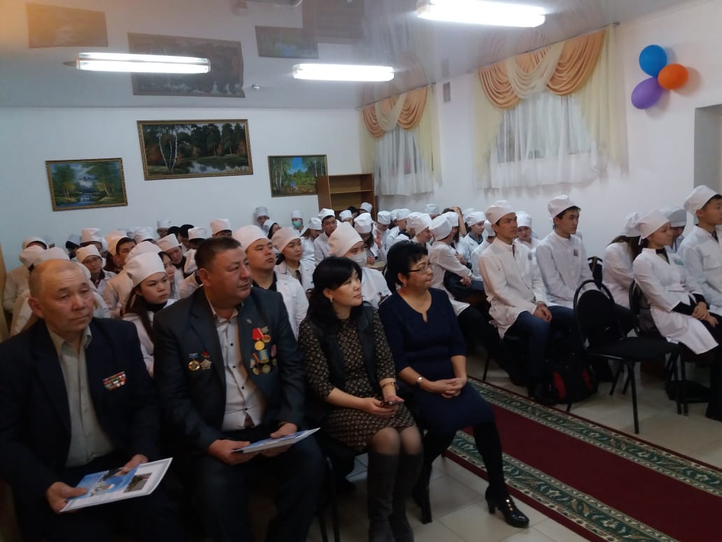 21 февраля в Уральском медицинском колледже «Максат» состоялась встреча студентов первого курса специальностей «Стоматология» (ДТ-11,ДТ-12), «Фармация»(ФТ-11), «Лечебное дело» (Ф-02) с воинами-интернационалистами Кезекеновым Біржаном Самиғоллаұлы и Балықбаевым Нұрым Мағазовичем.