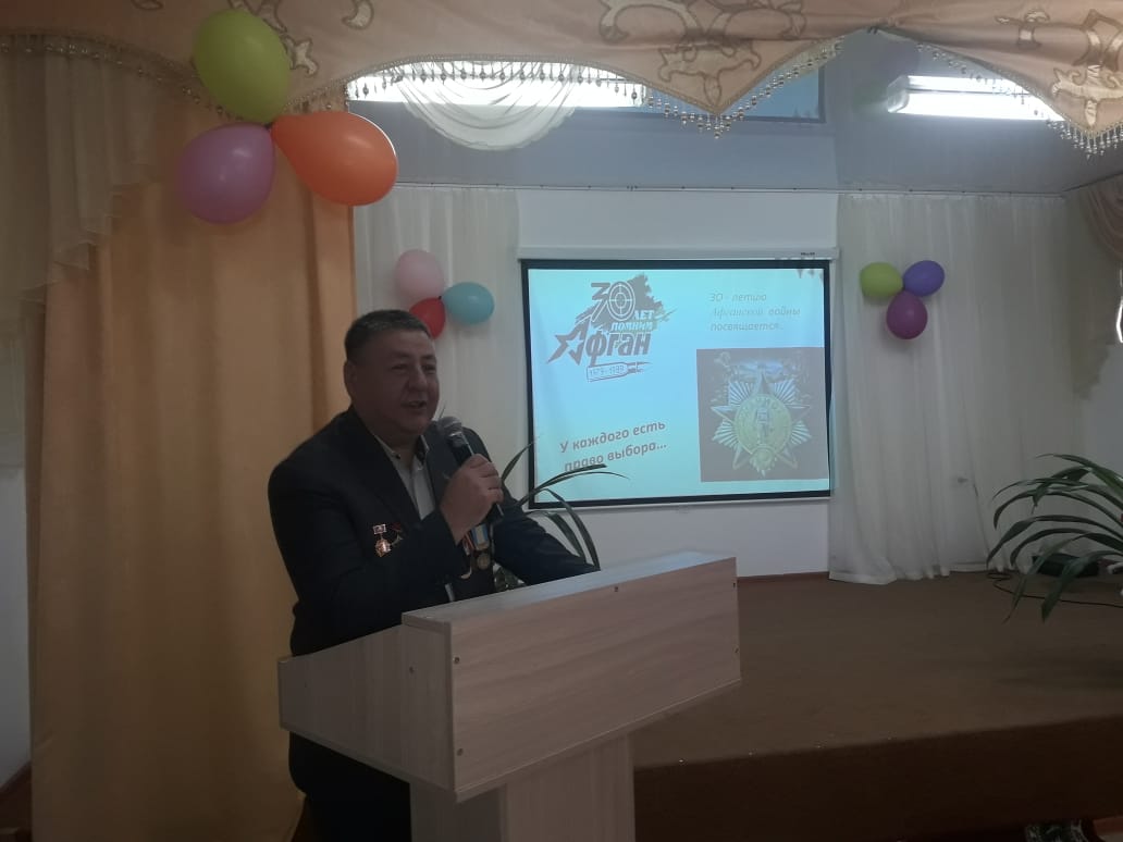 Военно-патриотическая встреча началась с рассказа куратора Салыховой К.М. о биографии и военных подвигах нашего земляка, Героя Советского Союза и Героя России Николае Саиновиче Майданове, были продемонстированы слайды, документальные фильмы. Студенты внимательно выслушали мини-рассказы о том, как по приказу попали в Афганистан, как участвовали в боевых сражениях и как радовались, когда возвращались домой. Очень скромные, не привыкшие много рассказывать о том, что когда-то пережили, как рисковали своей жизнью. Воины-интернационалисты ответили на вопросы, интересовавшие студентов и пожелали студентам беречь мир, чтобы жизнь никогда не столкнула нынешнюю молодежь с тем, что пришлось им пережить. Но тем не менее быть всегда готовыми защитить свою Родину, свою землю.