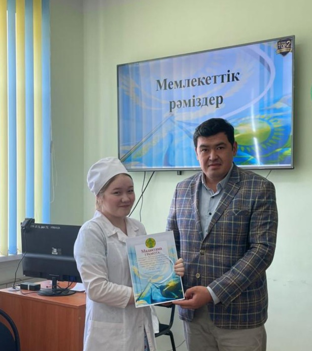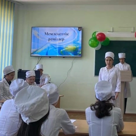 4 июня в честь праздника "День государственных символов Республики Казахстан" в группе МС-01 специальности "Сестринское дело" куратором Жайгалиевой Г. С. был проведен воспитательный час "Елім менің".