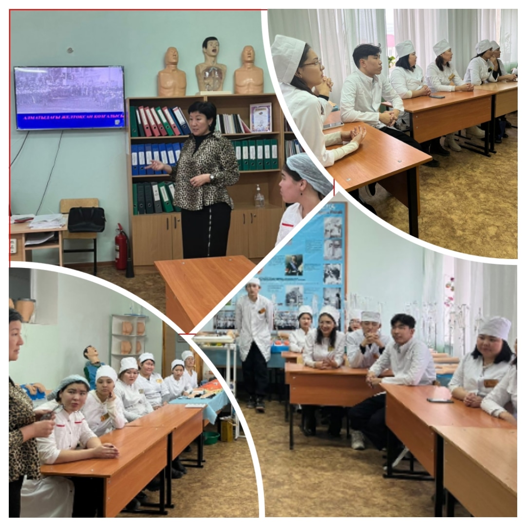 15 декабря куратор группы МС-23, МС-25 специальности "Сестринское дело" Бисембаева К. Н. провела воспитательный час для студентов на тему "Тәуелсіздік - құндім, қасиеттім, құттерлім" в память о жертвах Декабрьских Событий.