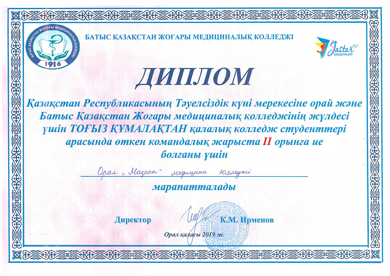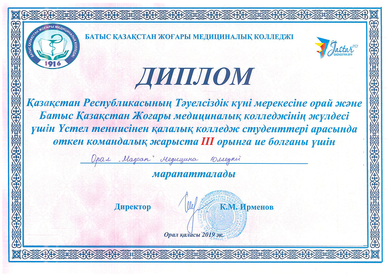 14 декабря 2019 года сборные команды колледжа Максат по тогызкумалаку и настольному теннису приняли участие в городском турнире среди колледжей и заняли 2 и 3 места соответственно.