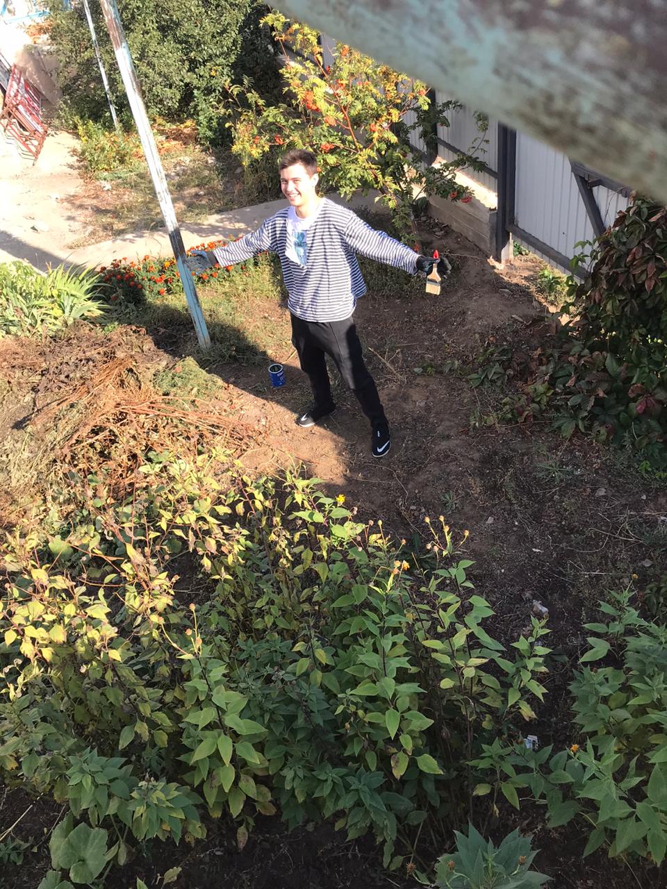 Студенты группы Дт-12 специальности «Стоматология» Парфенов Дамир, Туреев Батырбек покрасили газовую трубу во дворе дома ветерана труда Кирильчевой Н.С –бывшего преподавателя медицинского колледжа.