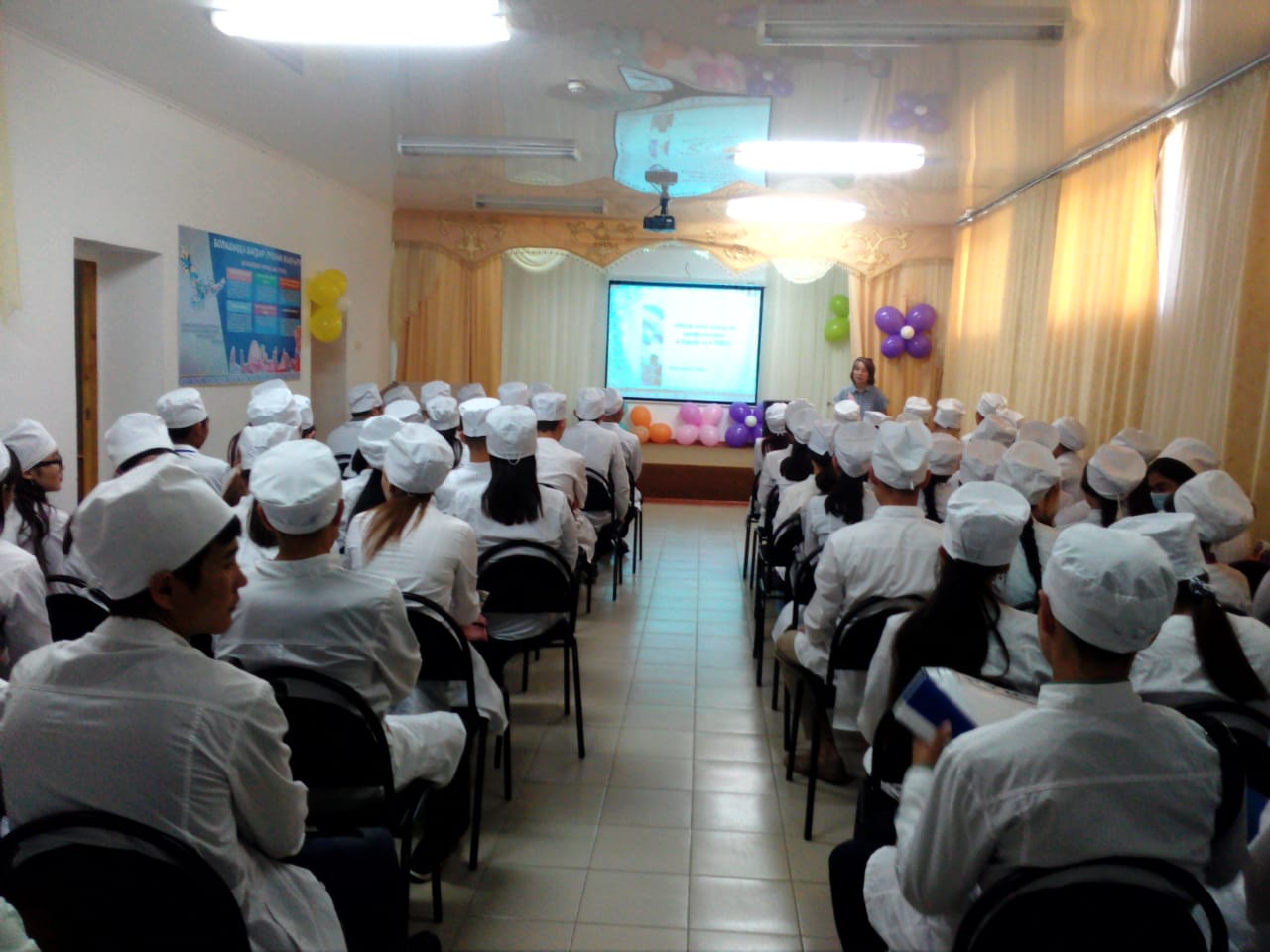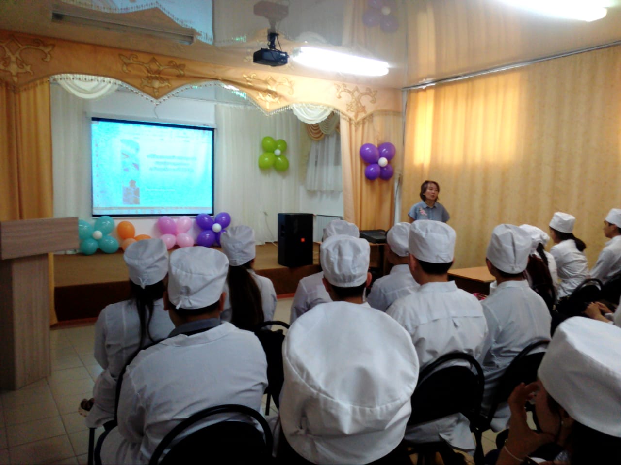 28 мая 2019 г. педагог областного центра по профилактике и борьбе со СПИД Г.К.Умбетова провела встречу со студентами 1-2 курса специальностей «Лечебное дело», «Сестринское дело». Информационная беседа была содержательной: о путях передачи ВИЧ, об эпидемиологической ситуации. Был организован показ тематического видеофильма.