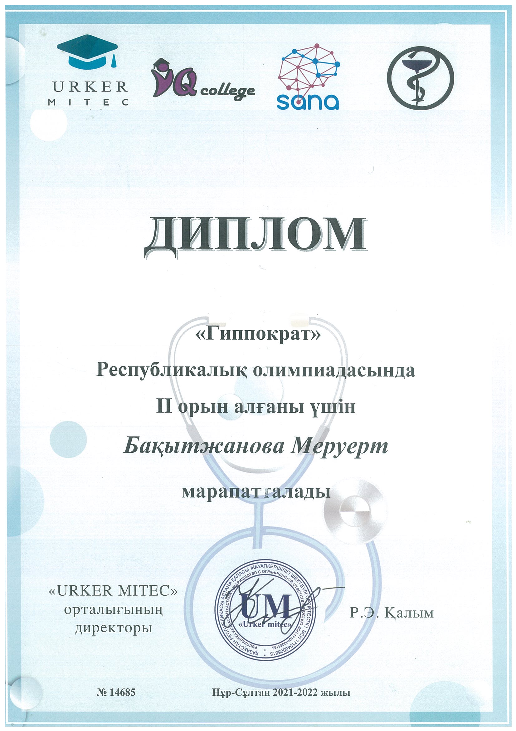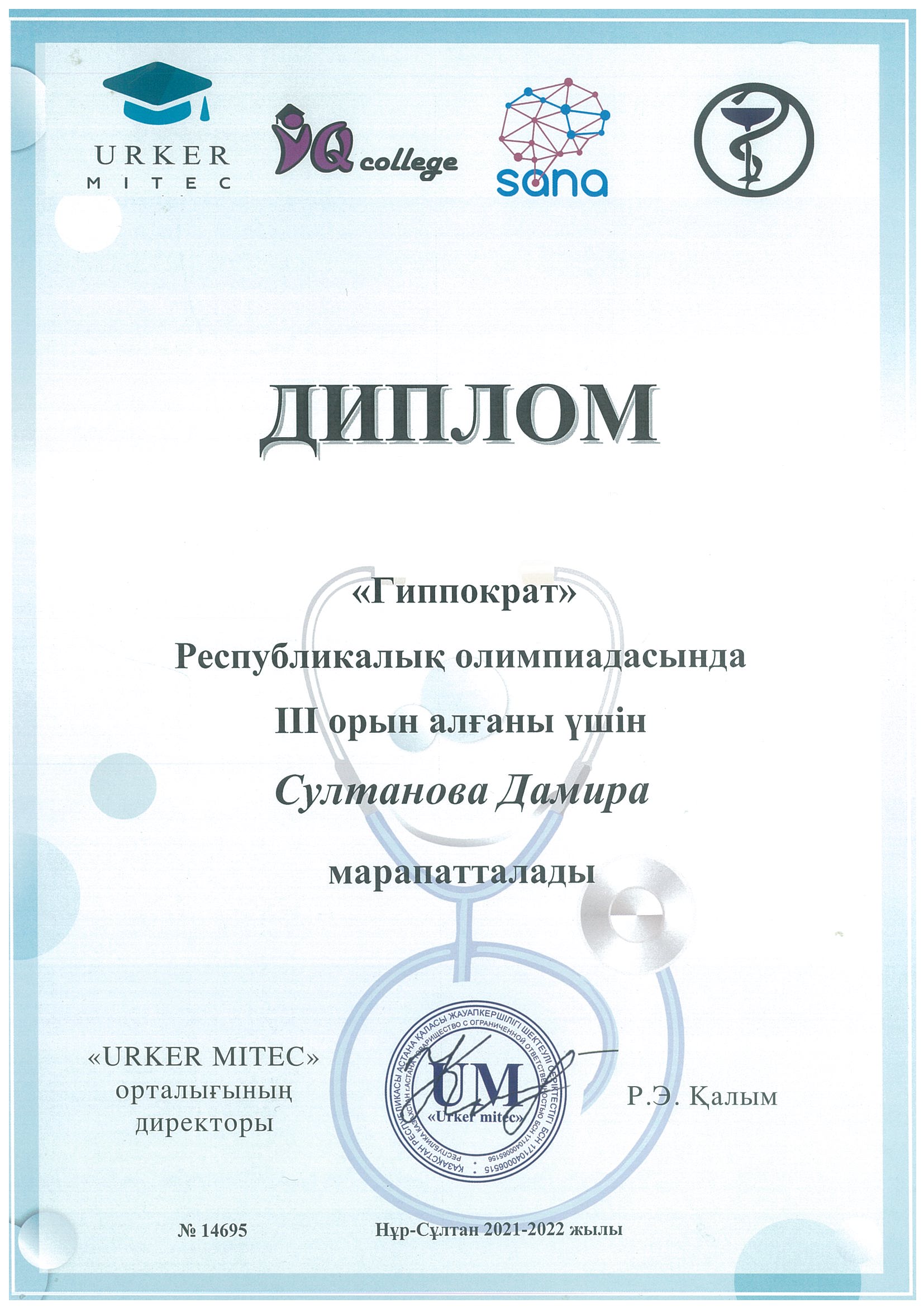 В республиканской олимпиаде «Гиппократ» участвовали студенты І-ІІІ курсов специальностей 09120100 «Лечебное дело», 09130100 «Сестринское дело». Всем участникам олимпиады и преподавателям были вручены похвальные грамоты, дипломы ІІ и ІІІ степени, сертификаты , а колледжу кубок.