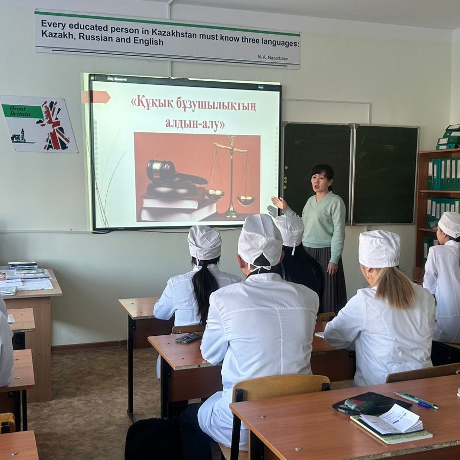 Сегодня Мс13,Дт31 группам кл руководитель К.К. Аменова провела воспитательный час по профилактике правонарушений.