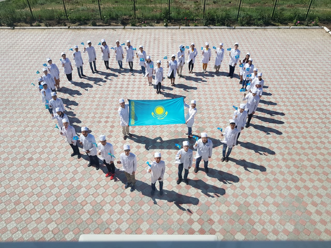 Студенты 1 курса специальностей "Сестринское дело"," Стоматология" 4 июня 2019 года организовали флешмоб "Мой флаг" тем самым выразили любовь к своей Родине и гордость государственными символами страны!