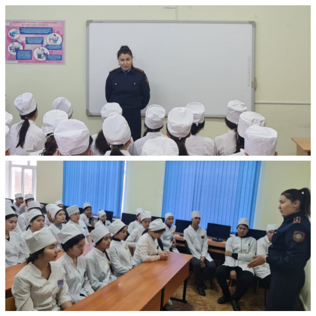 На встрече присутствовала инспектор полиции Утепова Молдир Кадимовна, которая предоставила студентам широкую информацию в рамках закона. В том числе остановился на общих положениях о соблюдении порядка в обществе. Главная проблема общества заключается в том, что защита и соблюдение прав каждого гражданина Республики Казахстан со стороны государства является почетной задачей юридических работников. В завершение встречи были заданы вопросы по обсуждаемой с сотрудником правоохранительных органов теме, на которые даны соответствующие ответы.