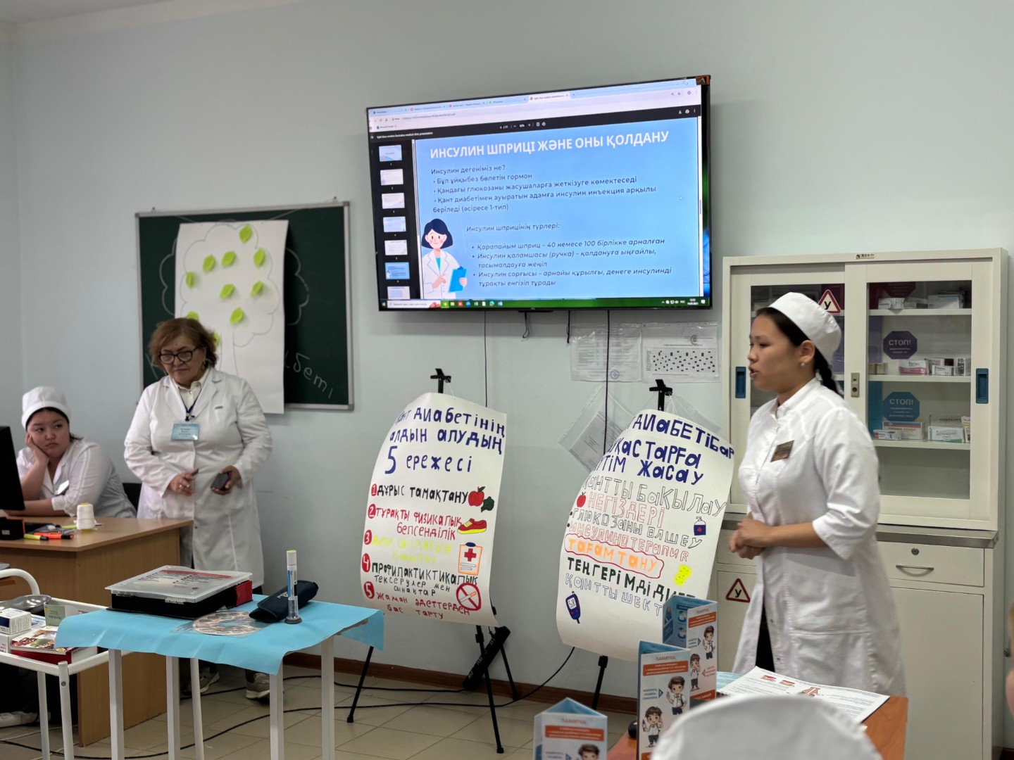 14 мая преподаватель Кузенова Н.К. провела мастер-класс «Школа здоровья: Сахарный диабет», где студенты познакомились с мерами профилактики, особенностями ухода и сестринской помощи пациентам с диабетом.