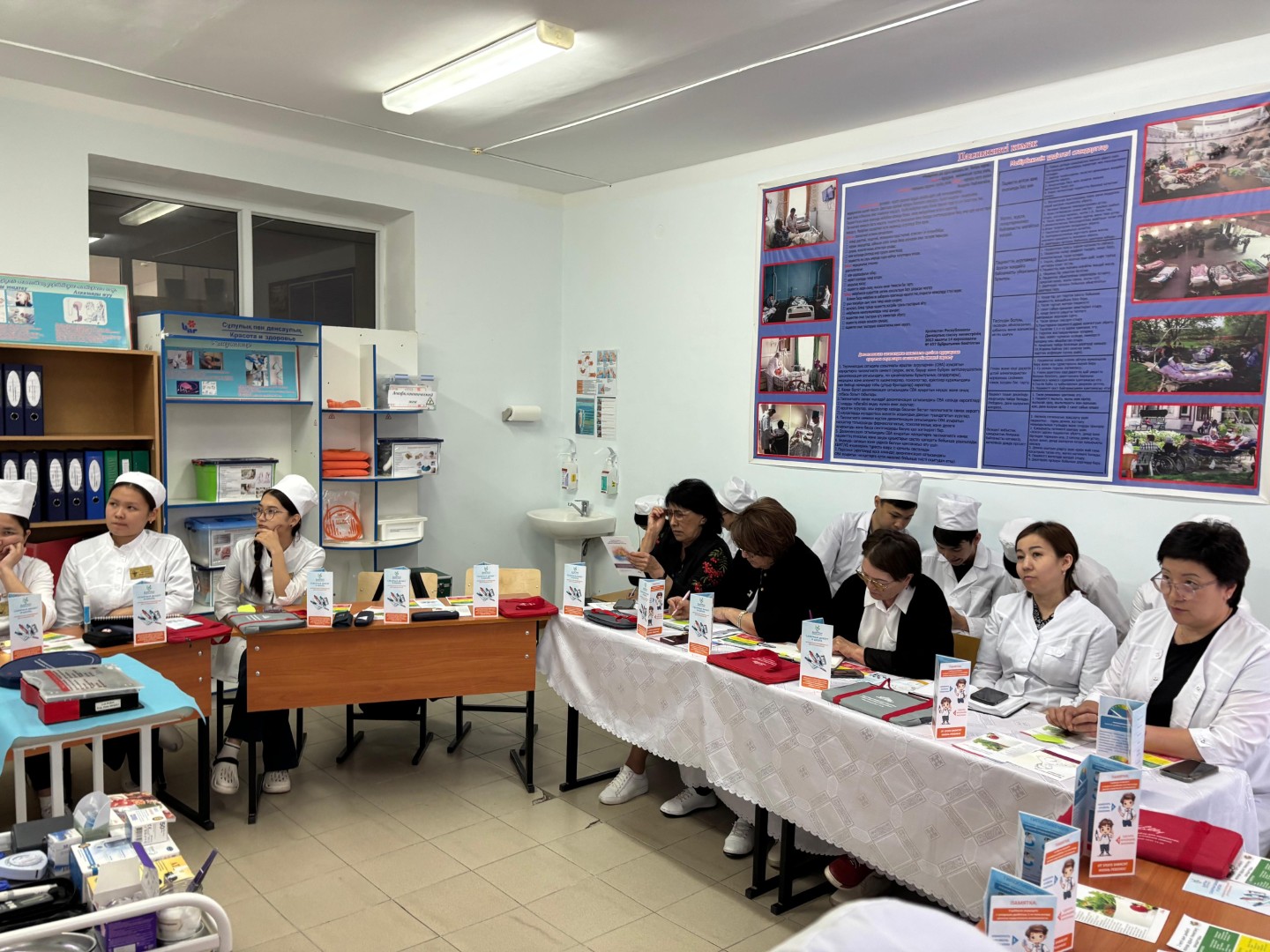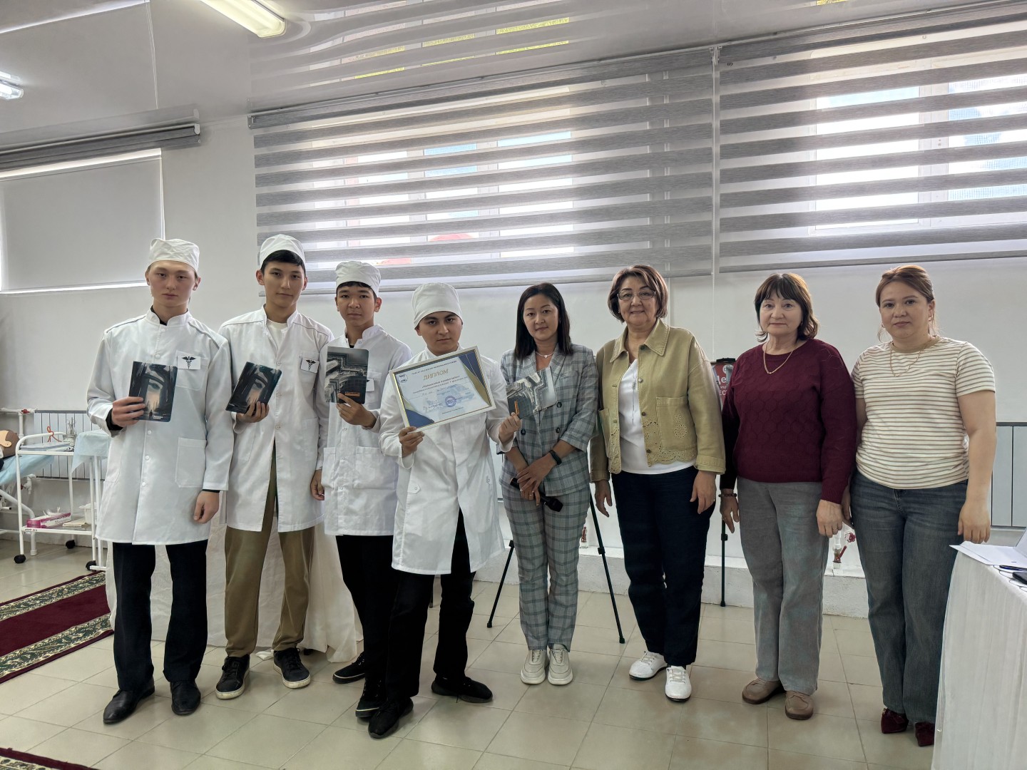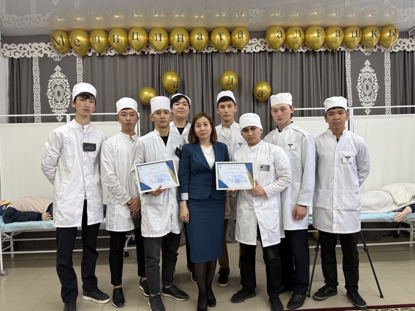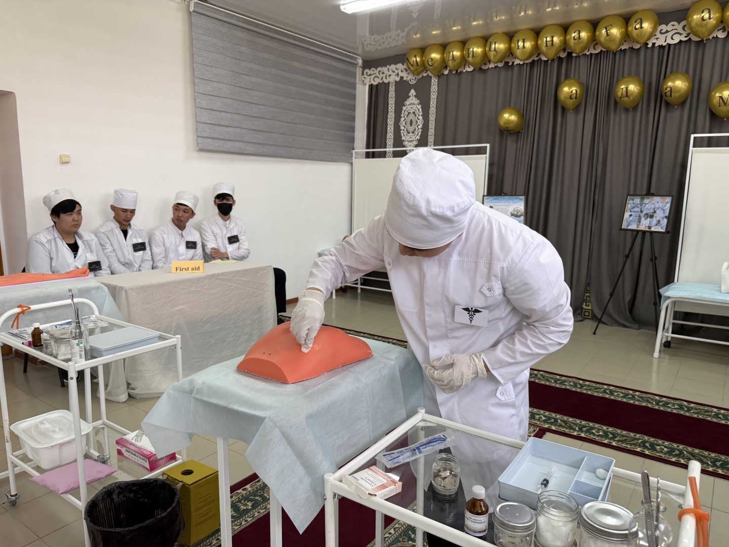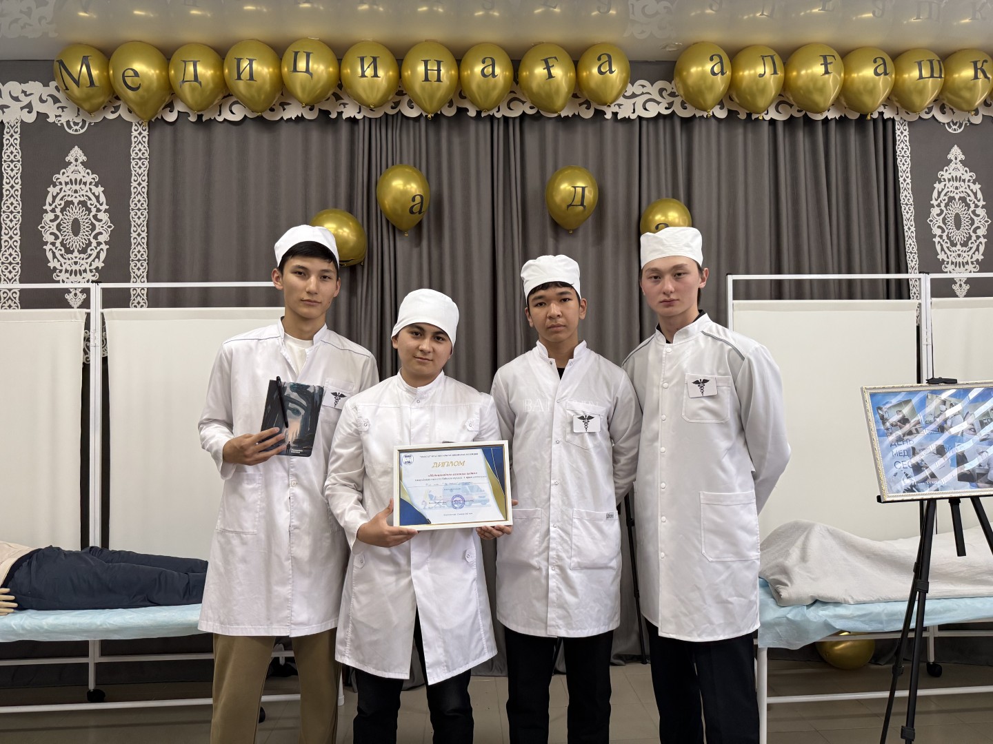 15 мая тематическая неделя завершилась профессиональным конкурсом «Первый шаг в медицину», организованным преподавателем Рыскалиевой А.С. Конкурс включал четыре этапа: презентация команды, кризисная комната, безопасная транспортировка пациентов и глоссарий медицинских терминов.