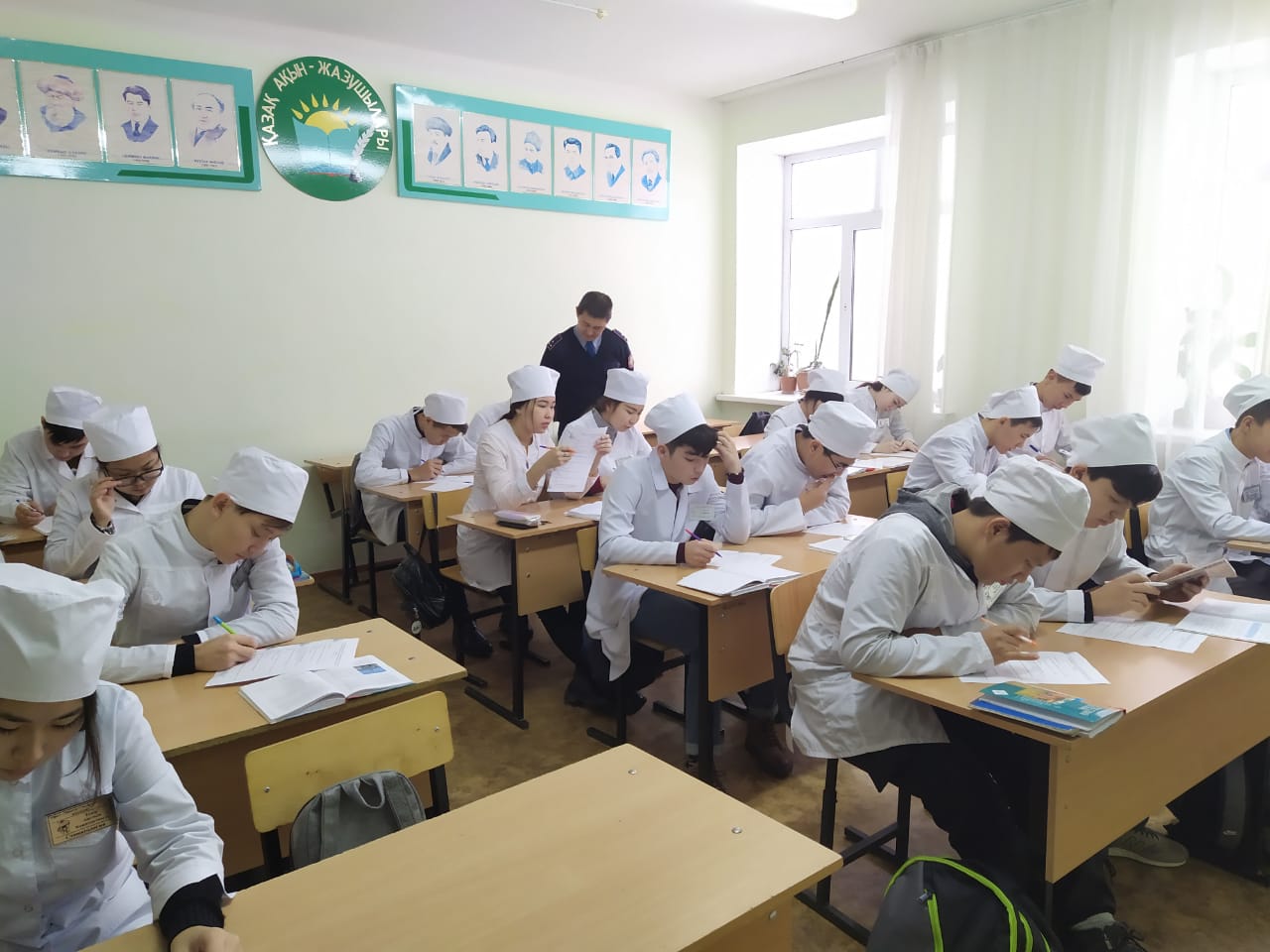 3 декабря 2019г. сотрудником УИП группы ЮП отделения местной полицейской службы Зачаганского ОП УП г.Уральск А.Т.Ишпановым было проведено анкетирование с целью выявления роли инспекторов полиции и фактов вымогательства и разборок среди студентов.
