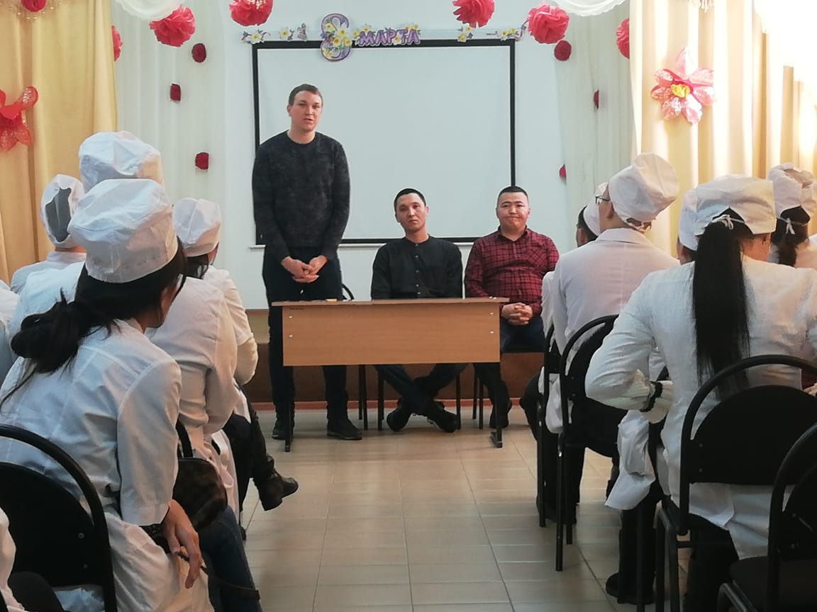 15 марта 2019 г. состоялась встреча студентов IV-курса с выпускниками 2003-2004 г. специальности «Лечебное дело» Бижановым Аскаром, Науменко Артемом, Кереевым Медетом, работающими в настоящее время фельдшерами на месторождении Кашаган в компании «North Caspian Operating Company» (NCOC).