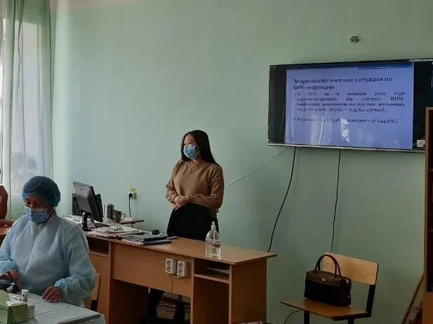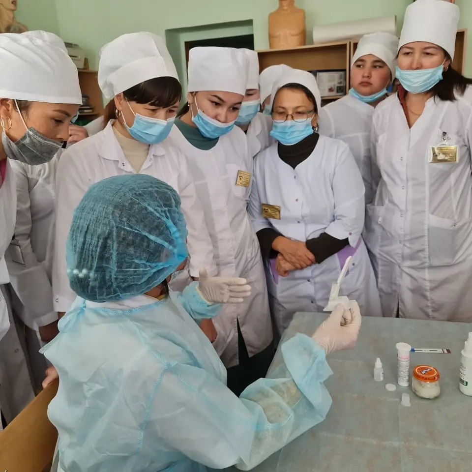 1 декабря в честь Всемирного дня борьбы со СПИДом 23 ноября 2021 года с участием специалистов Центра СПИД был организован практический показ для студентов групп Мс-23, Мс-25 специальности «Сестринское дело» Уральского высшего медицинского колледжа «Максат».