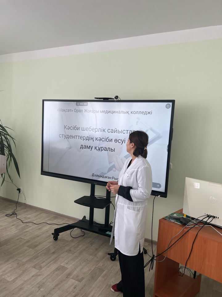 - Преподаватель специальных дисциплин Рыскалиева А. С. выступила на тему «Конкурс профессионального мастерства, инструмент профессионального роста и развития студентов»;